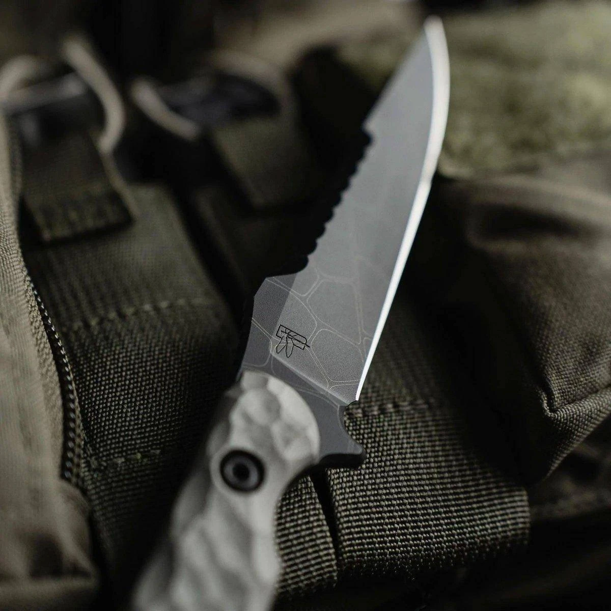 Constructed out of CPM S35VN steel and heat-treated to approximately 60 Rockwell, the Darter is stout enough to tackle any task. This Vapor variant of the knife is fitted with a subtle Dragonfly wing pattern engraved on the blade over the Black KG Gunkote and a Vapor Grey G10 handle with black liner. It is machined with a texture to match the Darter Dragonfly’s wing pattern, while simultaneously providing excellent grip when operating in wet conditions.
