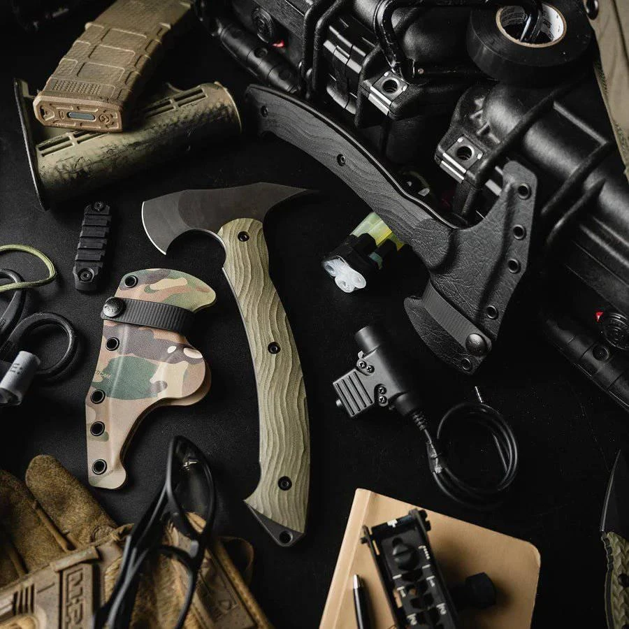 This edged weapon is made in the USA, individually serialized, and ready to stand up to any situation you can throw at it! Every Tomahawk includes a black Kydex sheath.