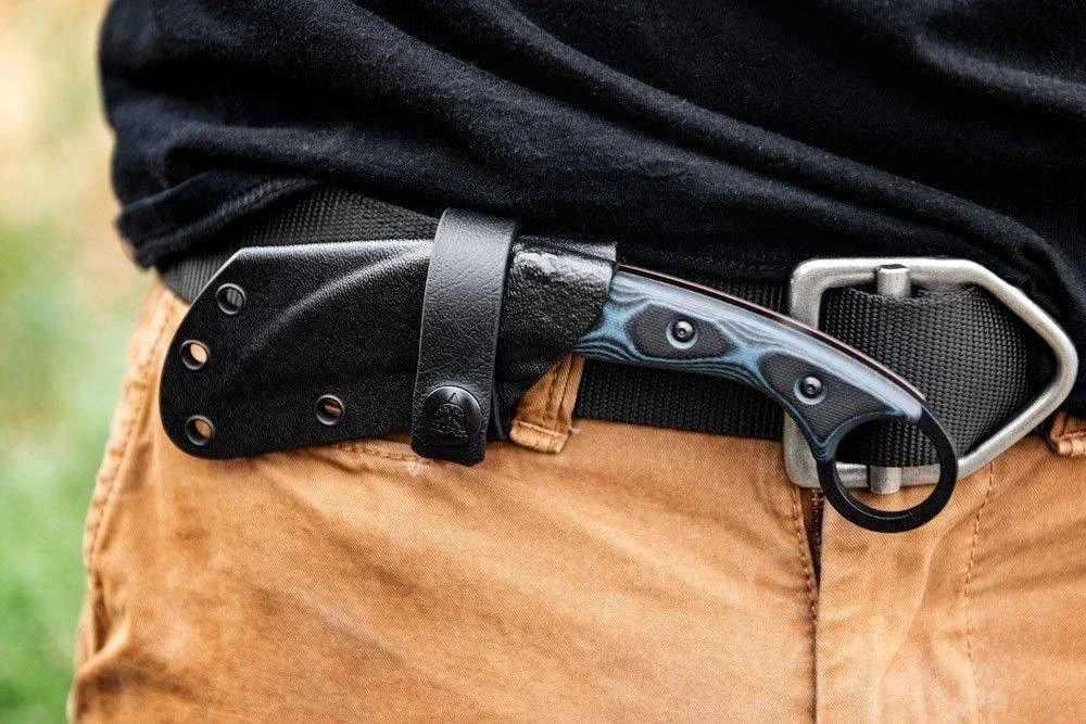 The blade shape, materials, and thicknesses are the same on the Devil’s Claw 2 as those from the original. The hawkbill blade shape is a proven design for utility and defense tactics. It bites deep on pulling cuts and on slashes. So whether you’re using it for self-defense or opening boxes, it’ll do the job quick and easy. The only real update between this and the original is that the handle has been extended to fit the user’s full hand and the ring added to the pommel as is found on karambits the world over. The longer handle with the ring on the end provides the user with options that aren’t available with the original version (just remember the trade-off is that the new version is slightly more difficult to conceal).
