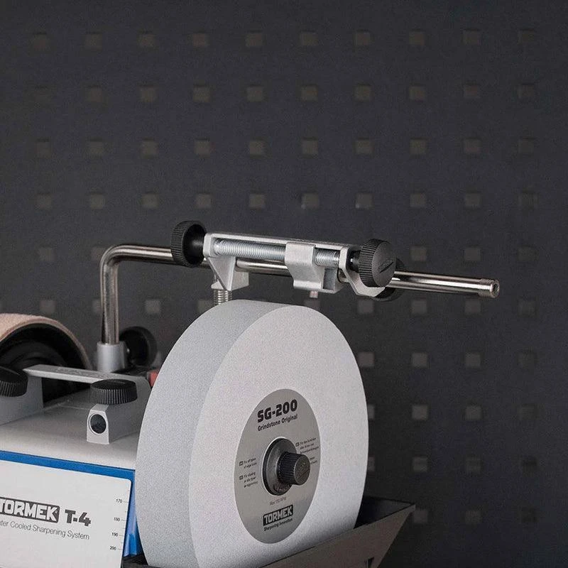 The TT-50 Truing Tool fits all Tormek machines with a universal support. The truing tool works on all Tormek grinding wheels except for the diamond grinding wheels, which have a steel body. You’ll damage both the tool and the grinding wheel if you use the truing tool on a diamond grinding wheel.
