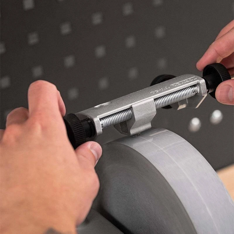 It’s easy for your grindstone to become hollowed out or oval over time when sharpening different tools with varying pressure. With the patented TT-50 Truing Tool, you can quickly and easily make your grindstone exactly round and flat again if it’s lost its shape. It’s particularly important for your grindstone to be completely round and flat when sharpening planer blades and plane irons.