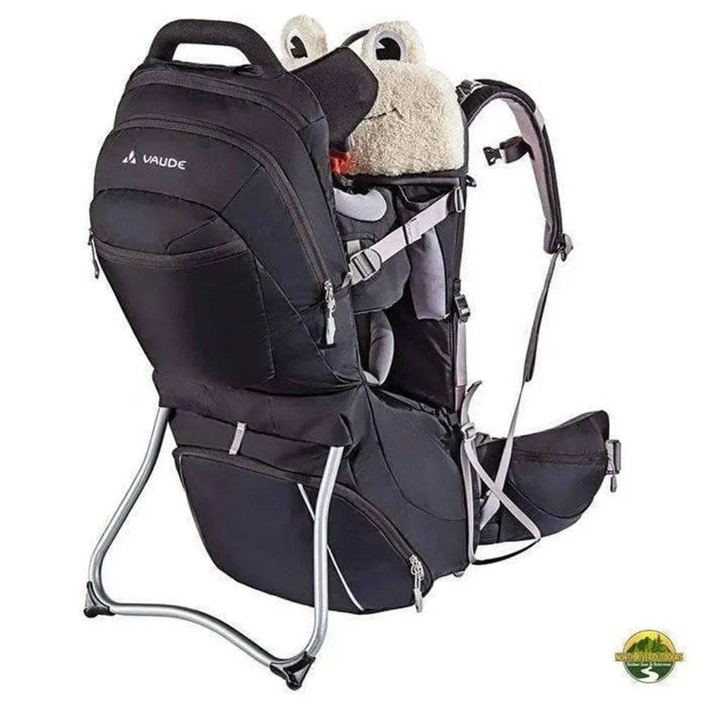 Individually adjustable supportive back – adjustable seat height – height adjustable torso support – separate bottom compartment – stowage compartment with zip – integrated sun protection cover – remote locking of the hinged stand – handles on front and back – detachable, washable front pillow – shapeable headrest – foot supports – non-reachable footing joint – padded hip belt with pocket – changing mat