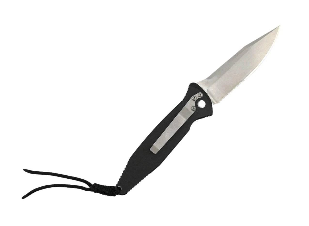 - Mini Socom-Auto Clip Point Satin Blade Serrated (P/N 300149)
