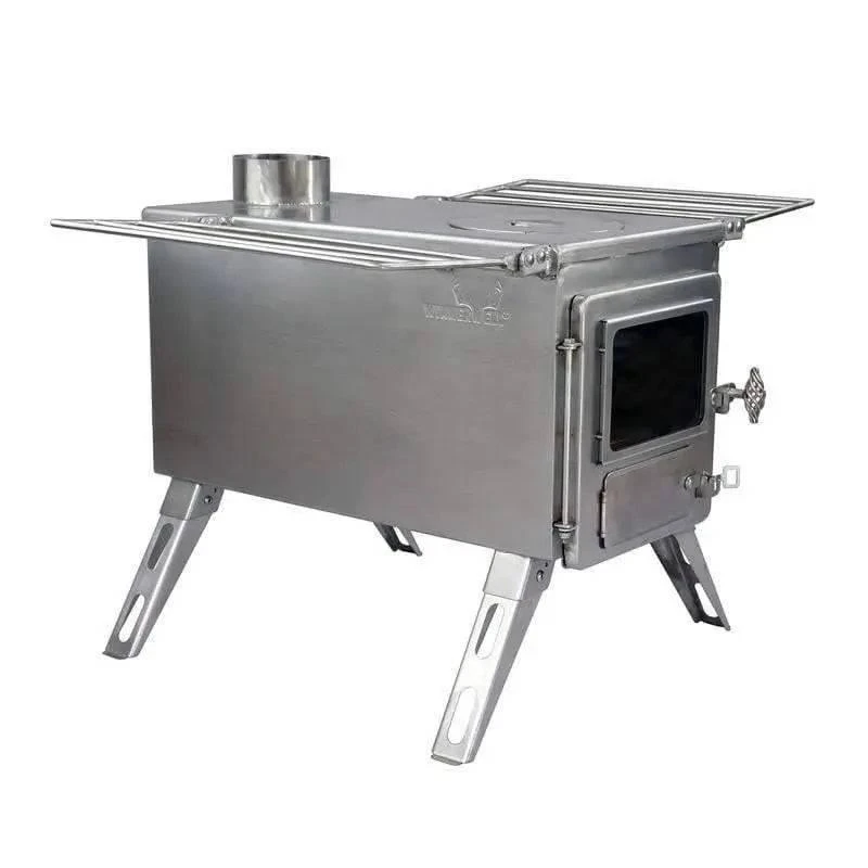 - Highly portable- Nesting legs and shelves fold flat to the stove body; 5 pipe sections, spark arrestor, and an ash scraper stow inside the stove body