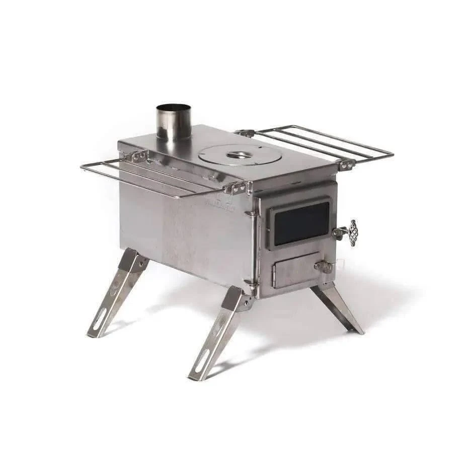 - Highly portable- Nesting legs and shelves fold flat to the stove body; 5 pipe sections, spark arrestor, and an ash scraper stow inside the stove body